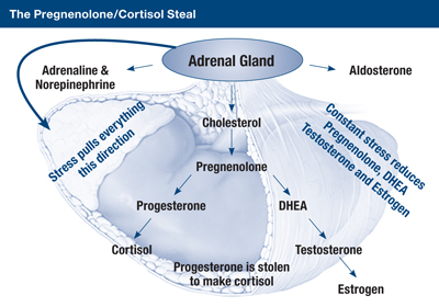 La progesterona y la DHEA son los precursores de las hormonas esteroideas más especializadas, como el cortisol, la aldosterona, el estrógeno y la testosterona. Si se toma progesterona no va a aumentar los niveles de estas hormonas. De hecho, la progesterona se opone a sus efectos tóxicos. El Dr. Peat dice: “La formación de estas hormonas está regulada, por lo que tomar el precursor de una corregirá una deficiencia pero no creará un exceso.” En los hombres jóvenes sin embargo, el exceso de progesterona puede disminuir la producción de testosterona y conducir a la disminución de la libido. Así la pregnenolona es preferible a la progesterona para los hombres jóvenes. El efecto inhibitorio de la testosterona no se ha observado en los hombres mayores, especialmente aquellos que están enfermos. Debido a que la pregnenolona se puede convertir a progesterona y DHEA, sus efectos serán similares a los de estas hormonas.