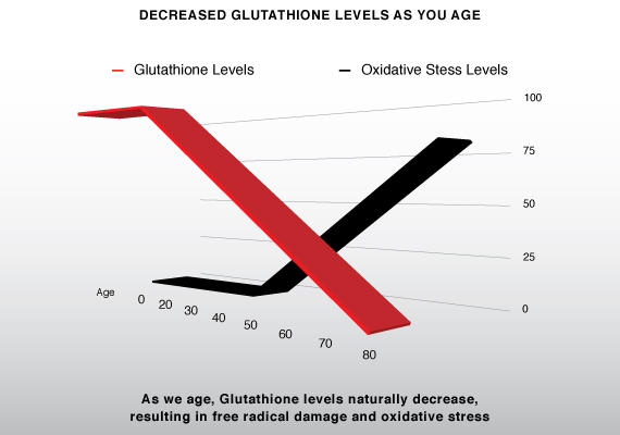 Relación Inversa entre los niveles de glutatión y estrés oxidativo con la edad: