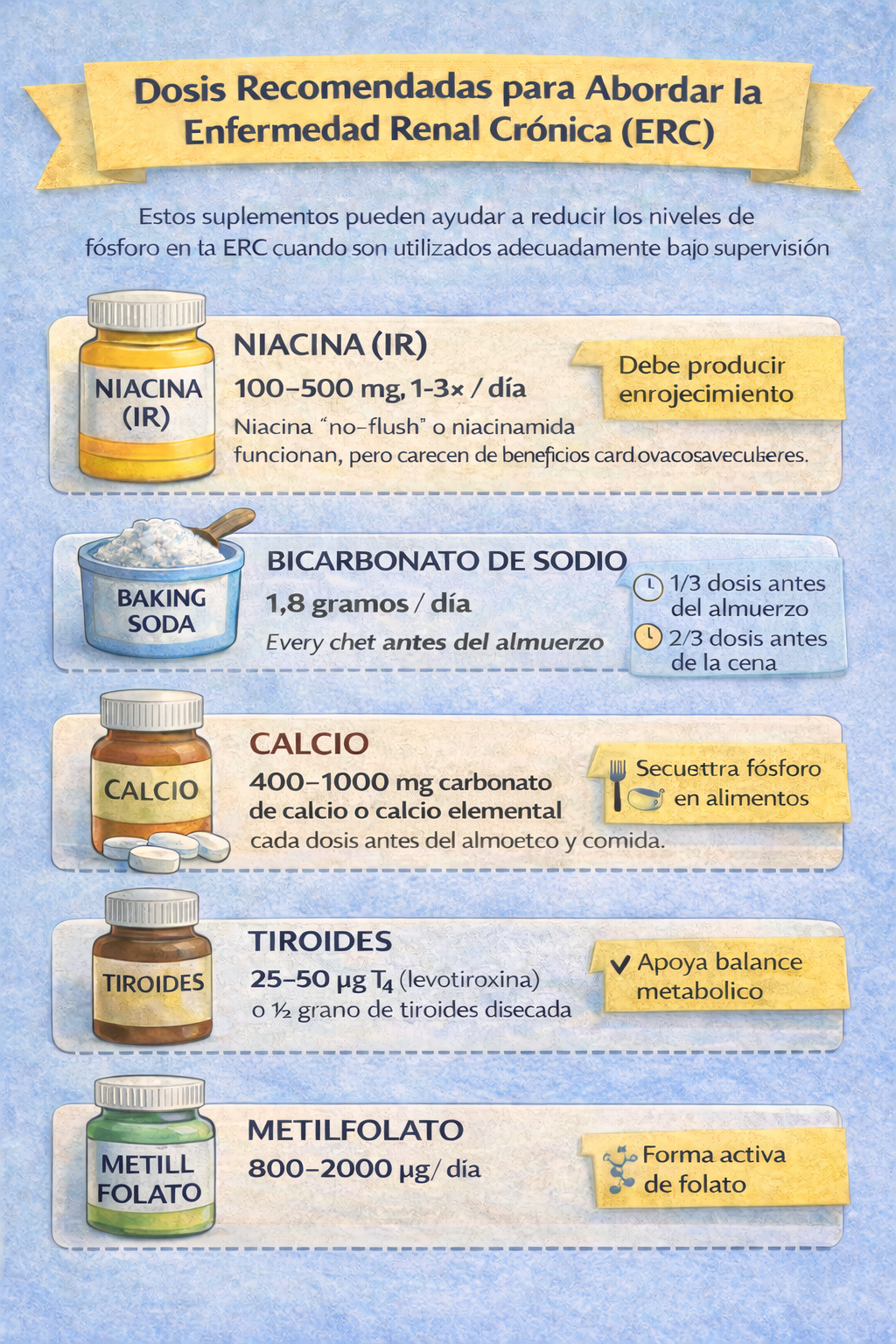 La niacina “no-flush” o la niacinamida pueden reducir el fósforo, pero carecen de efectos cardiovasculares en comparación con la niacina estándar.
